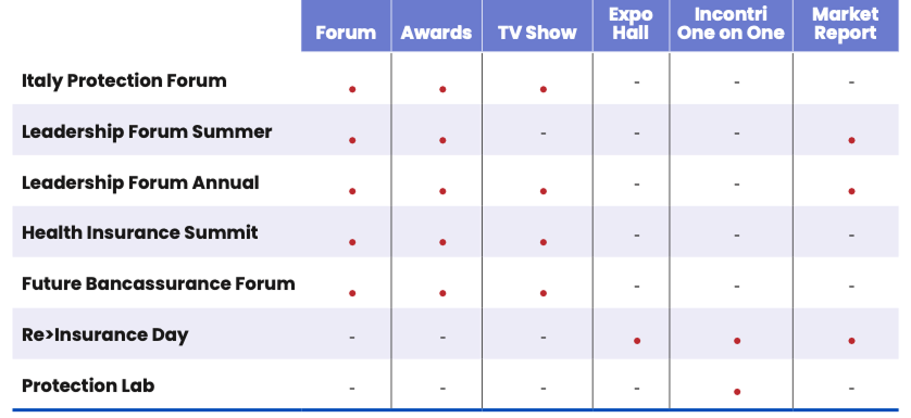 I nostri eventi, Leadership Forum, Leadership Forum PMI, Italy Protection Forum, Re>Insurance Day, Future Bancassurance Forum,